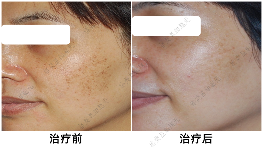 相较于传统IPL治疗黄褐斑,格美星细胞光创新研发CLT细胞光专利技术,点阵式优化强光光源,实现IPL的微秒(μs)级脉宽治疗,顺利获得调节治疗参数,满足脉冲时间小于或等于作为靶目标的黑素颗粒的热弛豫时间,联合蓝宝石智能冷却降温技术,在能量密度足够、不损伤皮肤、不产生激惹的前提下,分解并破坏靶目标,临床迟发反应更加温和,减少皮损发生