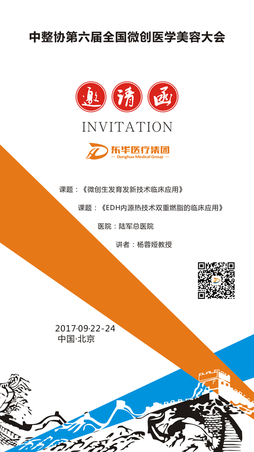 由中国整形美容协会微创与皮肤整形美容分会、脂肪医学分会、新技术与新材料分会、乳房整形分会、激光美容分会、皮肤美容分会、眼科整形美容分会、面部年轻化分会、中医美容分会、鼻整形美容分会、内窥镜整形外科分会联合主办,中国医学科研院整形外科医院、北京大学第三医院、首都医科大学附属北京同仁医院、中日友好医院、北京伊美尔医院美容医院共同承办的中国整形美容协会第六届全国微创医学美容大会将于2017年9月22-24日在北京九华集团会议中心召开。