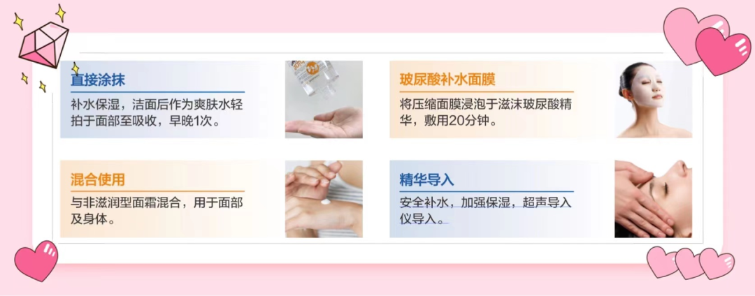 湿敷补水:直接搭配化妆棉或面膜纸使用,湿敷在脸上给肌肤快速补水;